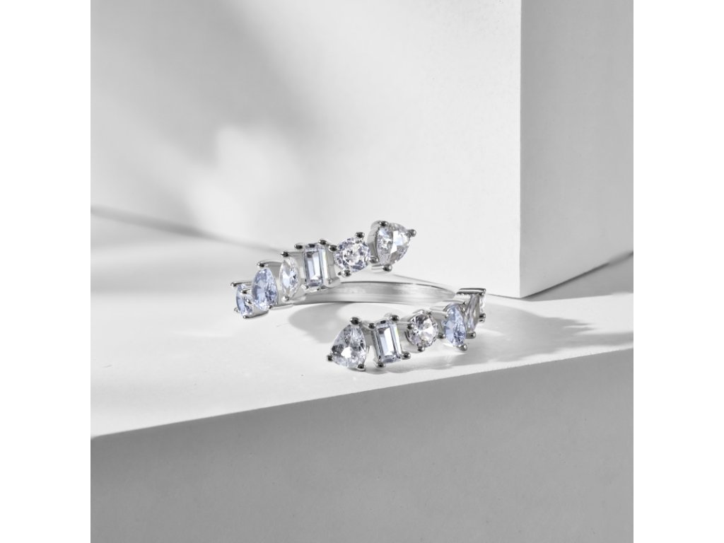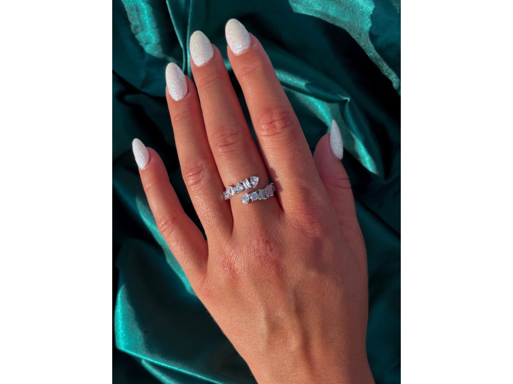 Tento nastavitelný prsten je vyroben z kvalitního stříbra a jeho elegantní zakřivení připomíná pohyb hada. Prsten je zdoben většími zirkony, které dodávají šperku oslnivý lesk a luxusní vzhled.