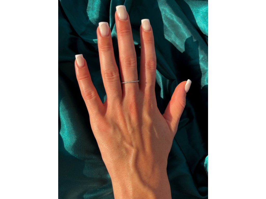 - Design: Decentní prsten se zirkony do poloviny obvodu