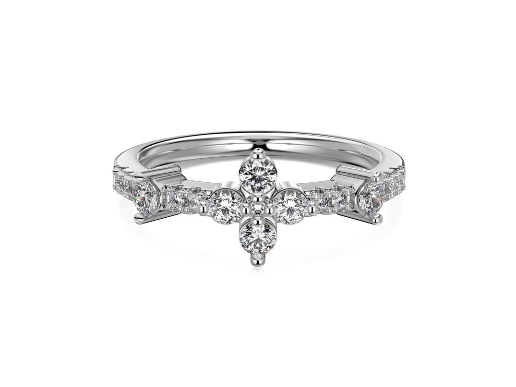 Prsten Debora je osazen zirkony, které dodávají šperku zářivý lesk. Uprostřed prstenu dominuje větší zirkon, který svým tvarem připomíná květinu.