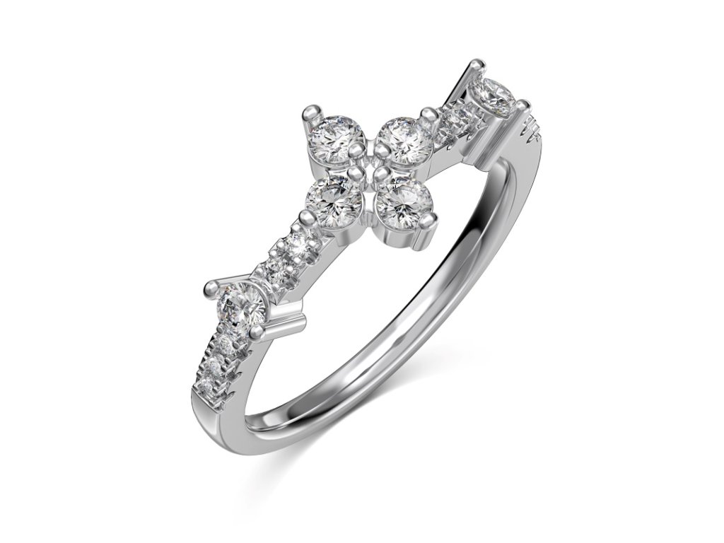 - Osazení: Hlavní větší zirkon ve tvaru květiny, dva doplňující jemné zirkony