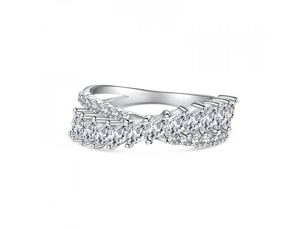 - Kameny: Zářivé zirkony osazené v prstenu do poloviny obvodu