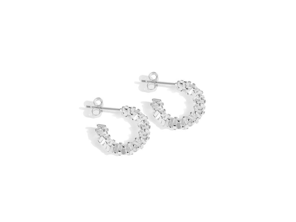 Stříbrné půlkruhové náušnice se vyznačují nádherným vzorem připomínající květinkový vzhled. Povrchovou úpravou rhodiem je zajištěn maximální lesk náušnice. Náušnice kombinují klasický design s moderním nádechem jak pro každodenní nošení, tak na speciální události.